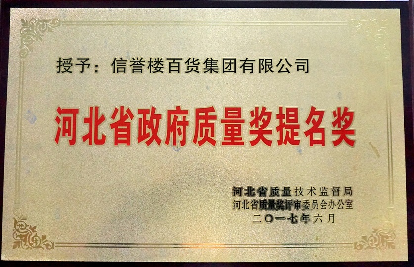 河北省政府質(zhì)量獎(jiǎng)提名獎(jiǎng)