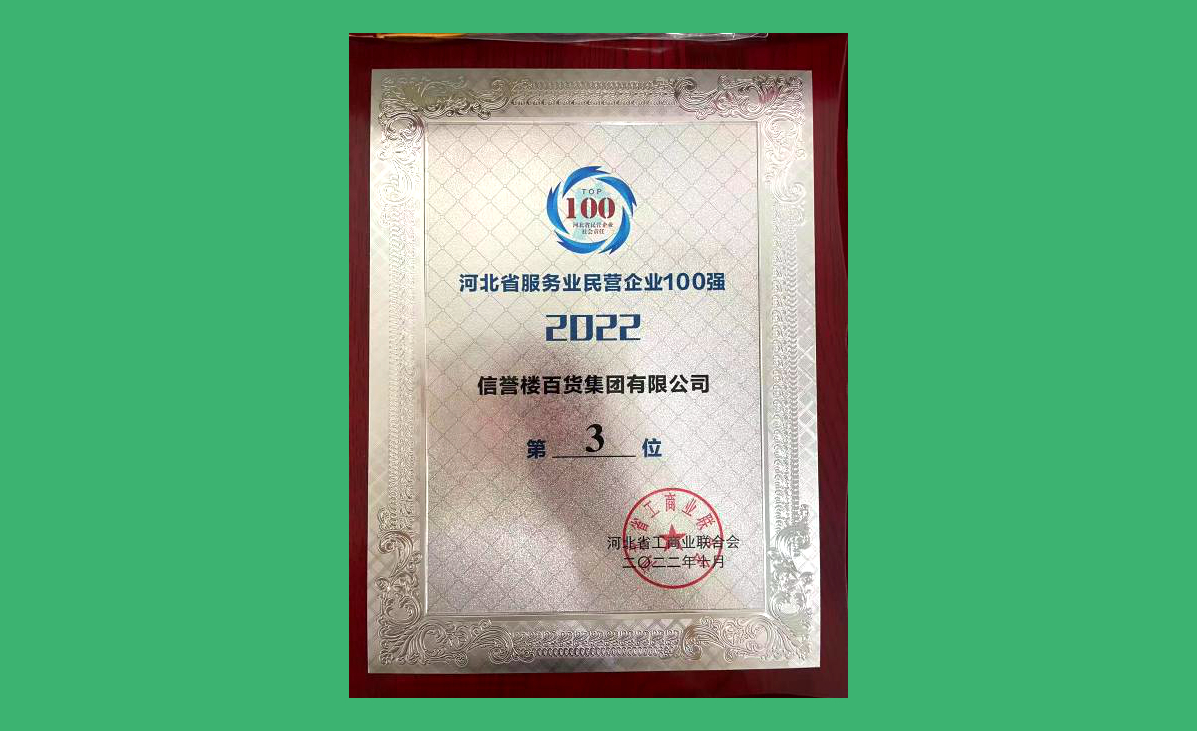 2022河北省服務(wù)業(yè)民營(yíng)企業(yè)100強(qiáng)第3位
