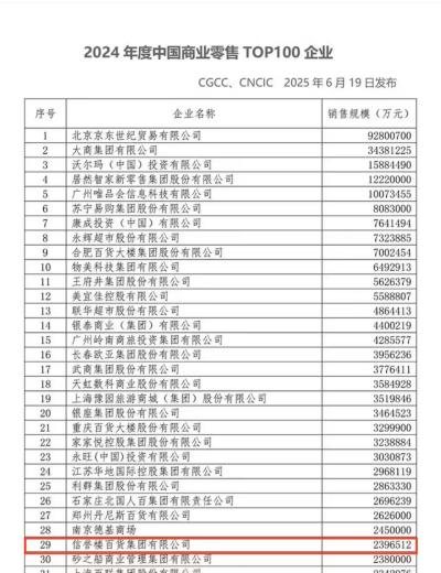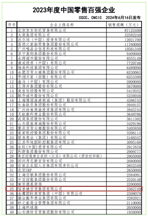 2023年度中國(guó)零售百?gòu)?qiáng)第35位